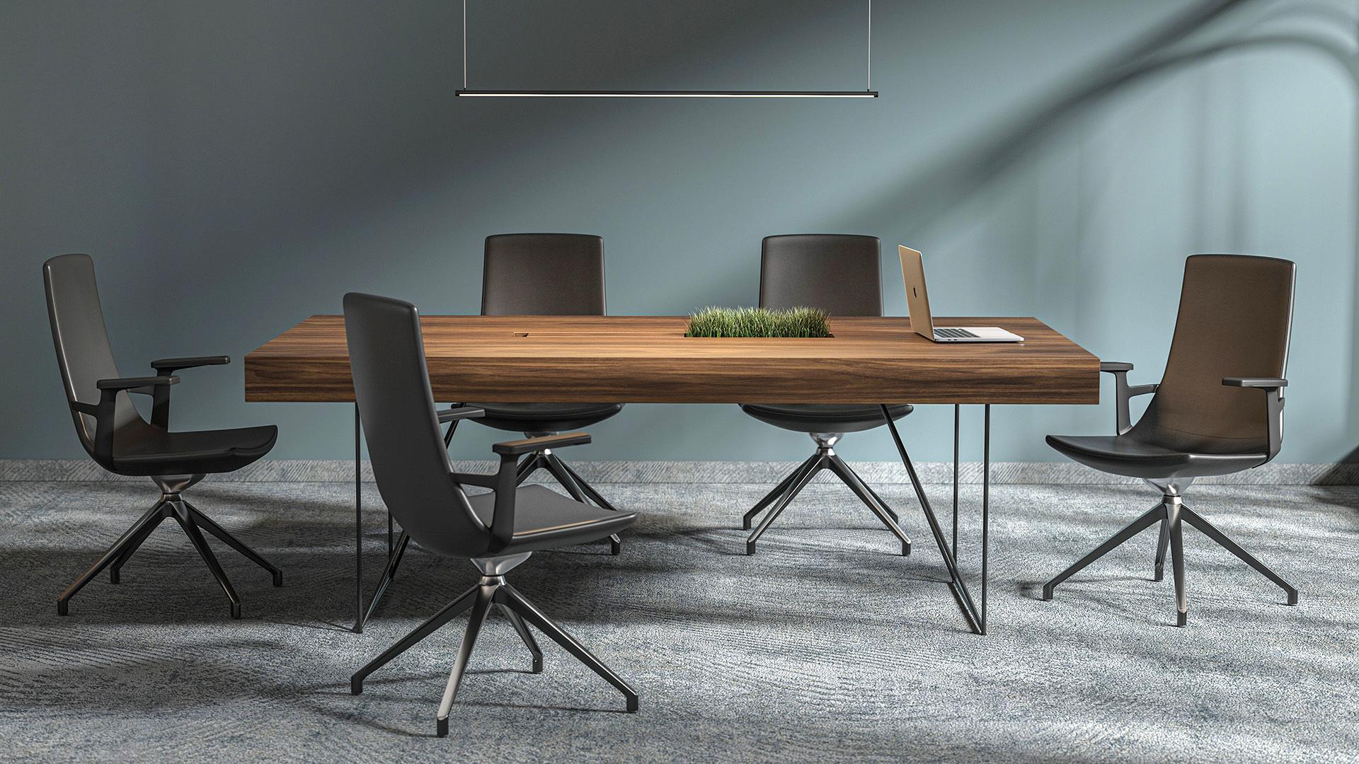 Столешница для этих столов доступна в двух вариантах толщины. Прочная 120-миллиметровая столешница из цельного массива придает столу утонченный вид, превращая его в центр внимания в любом офисе. 25-миллиметровая столешница — это стандартный вариант для офисов в минималистском стиле. Ее простой и приятный дизайн подчеркивает уникальную структуру ножек.
