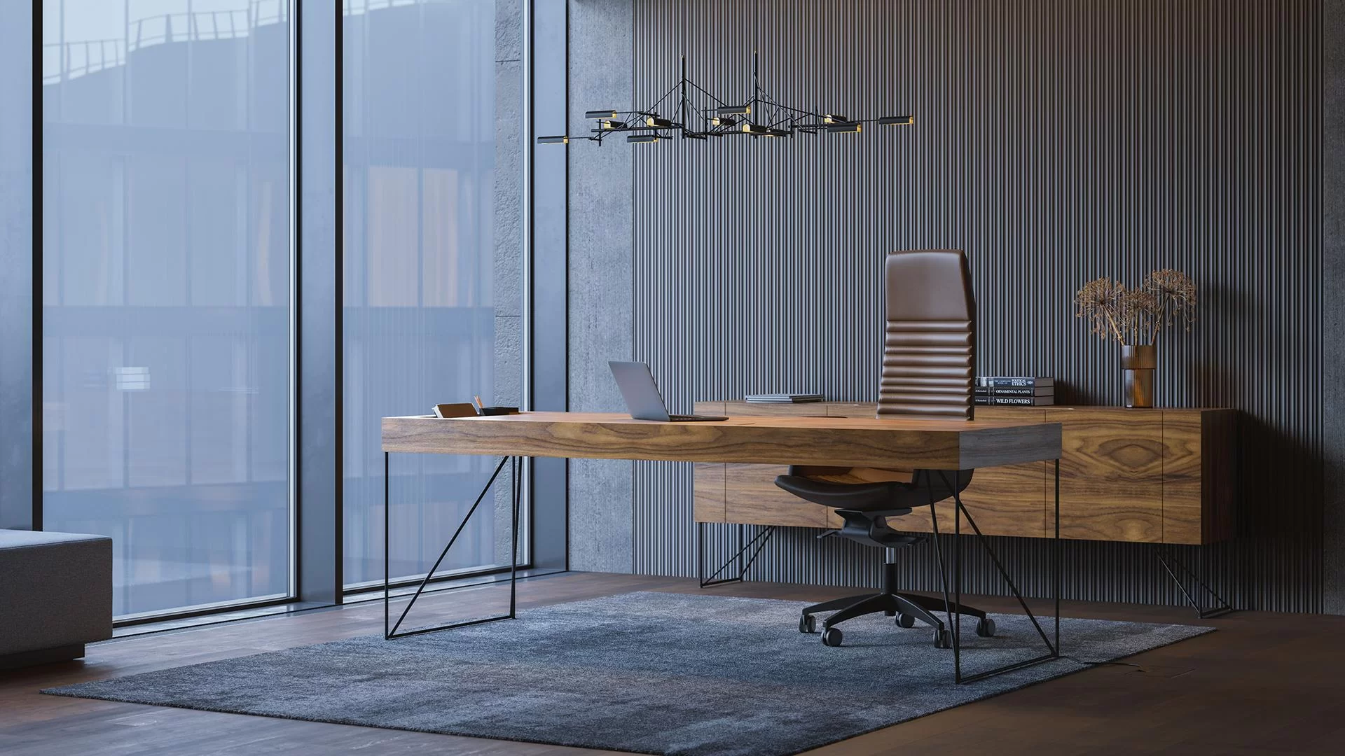 Эстетичный, привлекательный, минималистский и в то же время чрезвычайно функциональный дизайн мебели для руководителей AIR Executive обеспечивает непревзойденное ощущение комфорта и открытости. Ключевыми элементами линейки AIR Executive являются покрытая шпоном столешница из цельного массива натурального дерева и стальные ножки, которые не только придают столу элегантный вид, но делают его более устойчивым. Выдвижные ящики обиты высококачественной натуральной кожей. Вы можете выбрать дополнительные шкафчики с такими же деталями ножек, а также минималистские шкафы и другие решения для хранения вещей.