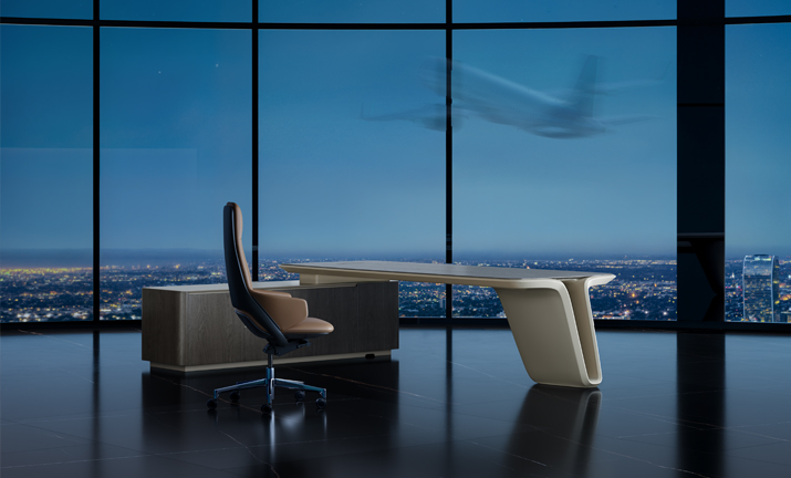 Столешница имеет изысканный 5-миллиметровый приподнятый рельеф, визуально увеличивающий глубину и объём. Наклонная плоскость высотой 20 мм в сочетании с двойными скосами 30° создаёт привлекательный контур. Этот продуманный дизайн не только обеспечивает комфорт при подписании документов, но и способствует сохранению спокойной и эффективной осанки в течение всего рабочего дня.