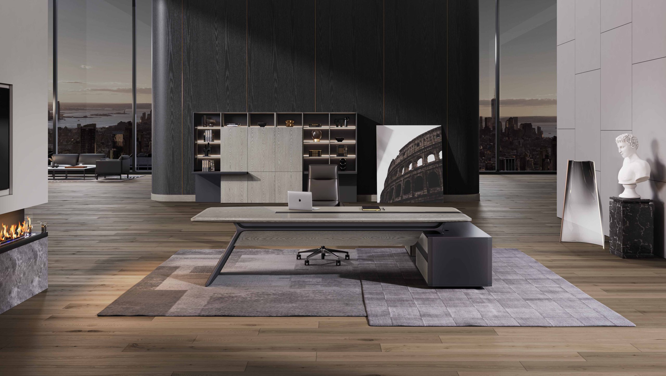 Если архитектура способна вдохнуть новую жизнь в город, то роскошный офисный стол способен сформировать облик всего офиса. Вдохновленный элегантным дисплеем Galaxy S8 с двумя гранями, его выразительный контур передней панели и ромбовидные изгибы отражают современное представление о роскоши офисного стола. Четкие крестообразные ножки стола демонстрируют идеальный баланс прочности и элегантности, делая его центральным элементом среди офисных столов. Стол покрыт специальным двухслойным лаком на водной основе без формальдегида, что делает его более привлекательным и экологичным.