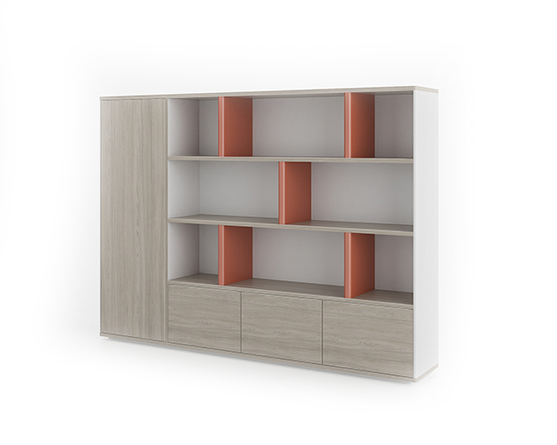 Используйте современный дизайн для создания офисного пространства, способного стимулировать безграничную креативность и энергию. Отделка шпоном дуба в сочетании с оранжевым цветом бросает вызов серьезности и скуке традиционных офисных помещений. Умная форма и простой, модный стиль изделия указывают на открытие нового поколения систем офисного пространства.