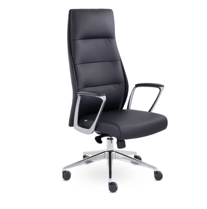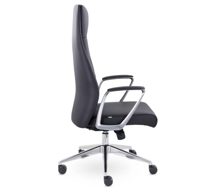 Кресло для руководителя с алюминиевыми подлокотниками и крестовиной подчеркивает его высокое качество и придает солидный вид. Высокая спинка, поддерживающая все зоны спины, и просторное сиденье обеспечивают комфорт и продуктивность. Современный механизм позволяет регулировать высоту сиденья, настраивать жесткость отклонения и фиксировать наклон спинки в четырех положениях. Это стильное и актуальное кресло обязательно привлечет внимание.