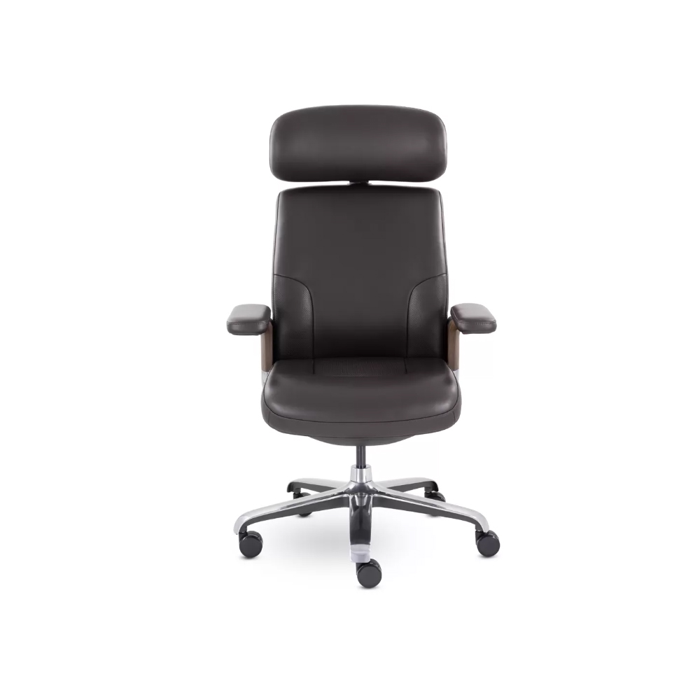 Грациозная модель кресла руководителя. Изящные изгибы, натуральная кожа, декоративные вставки из ABS-пластика с аквапринтом — все это подчеркивает эксклюзивность модели. Подголовник и подлокотники регулируются. Максимальная нагрузка 130 кг.