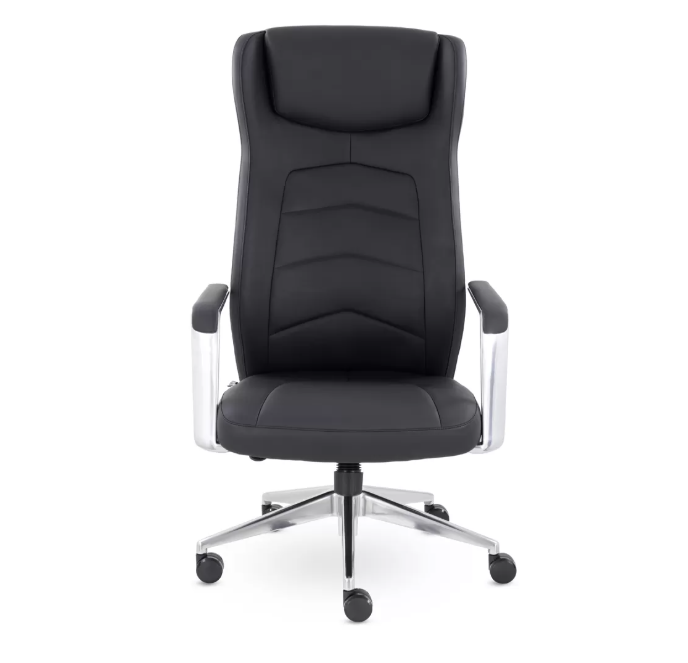 Современное кресло для руководителя изготовлено из натуральной кожи. Алюминиевые подлокотники с мягкими накладками обеспечивают комфорт, а плавный изгиб спинки и удобный подголовник позволяют расслабиться в течение рабочего дня. Кресло оснащено синхронным механизмом с возможностью фиксации в четырех положениях и выдерживает нагрузку до 120 кг.
