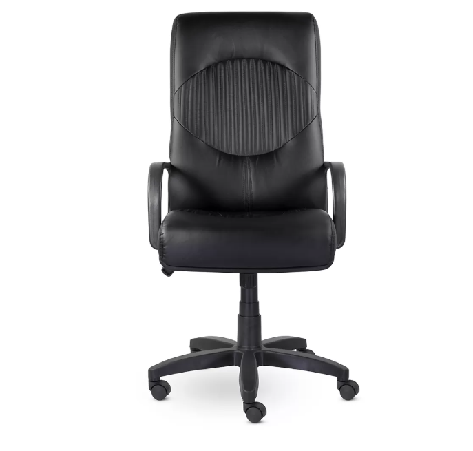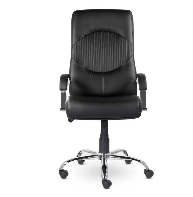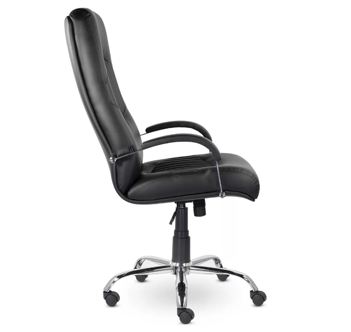 Кресло руководителя имеет две увеличенные подушки на спинке и сиденье для поддержки спины и головы, которые разделяются декоративными вставками. Модель отлично подойдет для строгого кабинета. Кресло стоит на усиленной пластиковой крестовине.