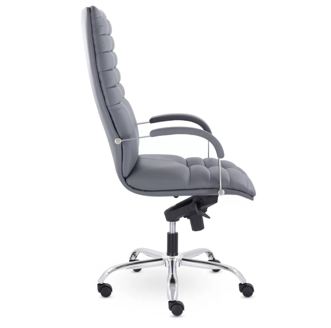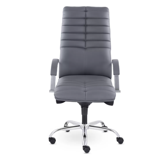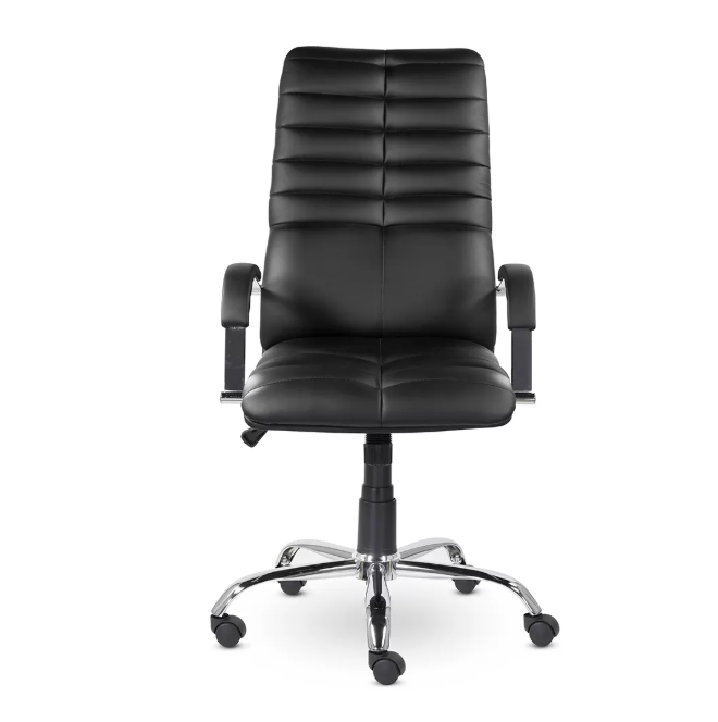 Современное кресло руководителя имеет вертикальную и горизонтальную прострочки, делящие спинку и сидение на небольшие прямоугольники. Тем самым создается интересный дизайн и кресло становится еще мягче. Подлокотники с мягкими накладками и крестовина выполнены из хрома. Механизм мультиблок. Максимальная нагрузка 120 кг.