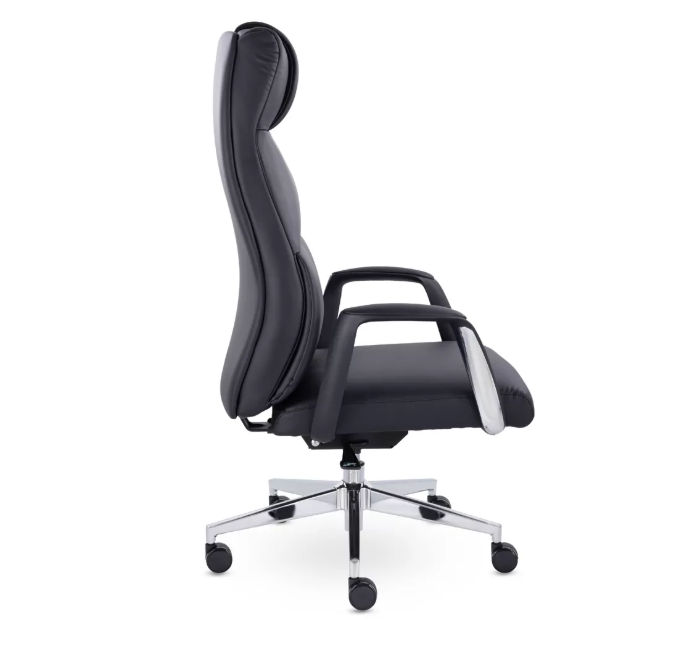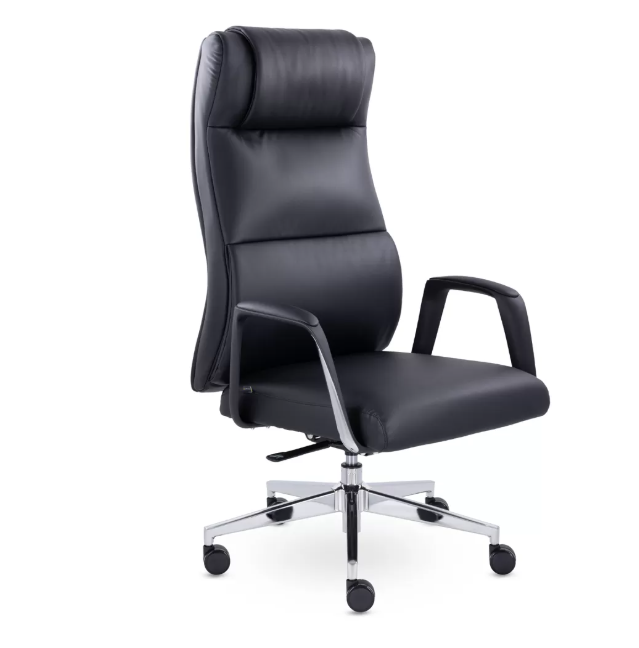 Широкое кресло с увеличенным мягким подголовником обеспечивает отличную поддержку спины и шеи. Изящные пластиковые подлокотники со вставками «под хром» и мягкими накладками гармонично сочетаются с хромированной крестовиной, придавая креслу элегантность. Механизм кресла позволяет регулировать высоту сиденья, отклонять спинку на 165 градусов и фиксировать наклон в любом положении. В наличии два изысканных цвета — кофейный и классический черный, которые подойдут под любой интерьер кабинета руководителя.