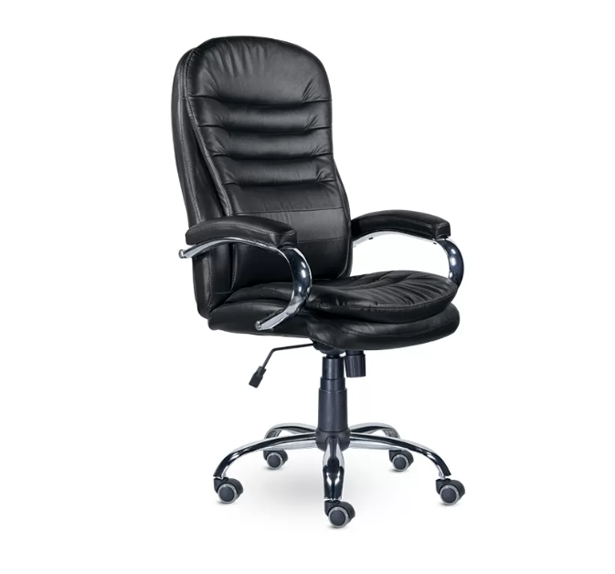 Хромированные элементы являются частью уникального стиля кресла руководителя. Высокая эргономичная спинка с поясничной поддержкой усилит комфорт использования кресла.