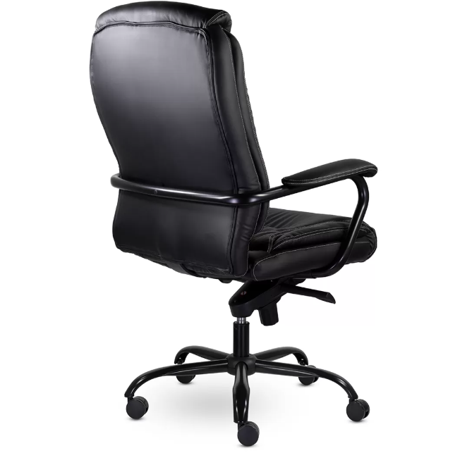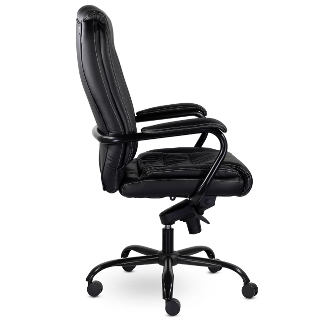 Массивное кресло руководителя с эргономичной спинкой и поясничной поддержкой. Увеличенные подушки и выраженный подголовник обеспечивают комфорт. Металлическая рама усиливает каркас. Механизм качания мультиблок с регулировкой под вес пользователя фиксирует спинку вертикально и позволяет отклонять её назад в 5 положениях. Жесткость отклонения регулируется пружинным блоком. Кресло выдерживает нагрузку до 210 кг.