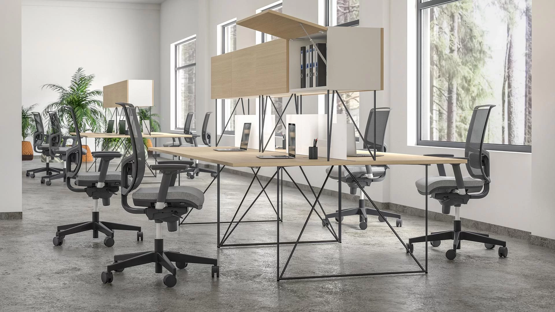 Коллекция очень функциональна: помимо рабочих столов, в ней представлен большой выбор корпусной мебели, столов для переговоров.