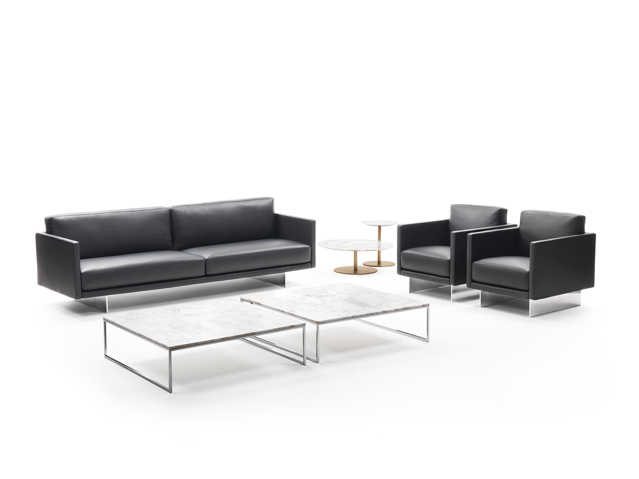 Дизайн изделий вдохновлен международным стилем, характеризующимся строгими и жесткими линиями. Металлические ножки в форме лезвия доступны в различных отделках.