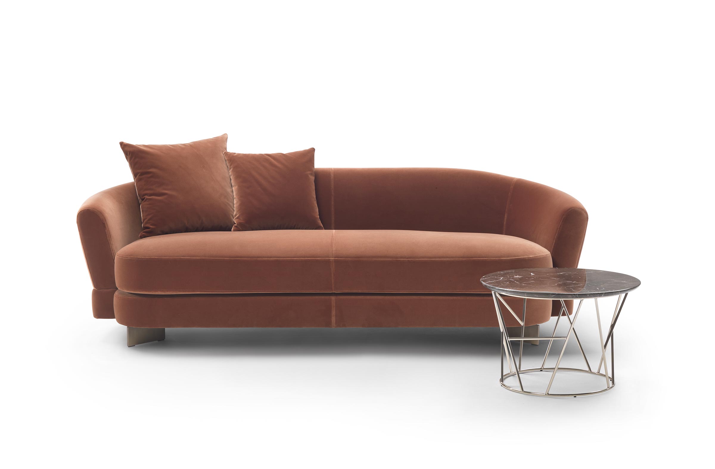 Диваны Jeff имеют изогнутый, обволакивающий дизайн с мягкими линиями, вдохновленными ретро-очарованием. Этот стиль придает им уютное и домашнее ощущение, идеально подходящее для создания теплой и комфортной атмосферы. В нашем каталоге представлены различные формы: круглые, слегка угловатые и линейные, чтобы соответствовать различным пространствам и планировкам.