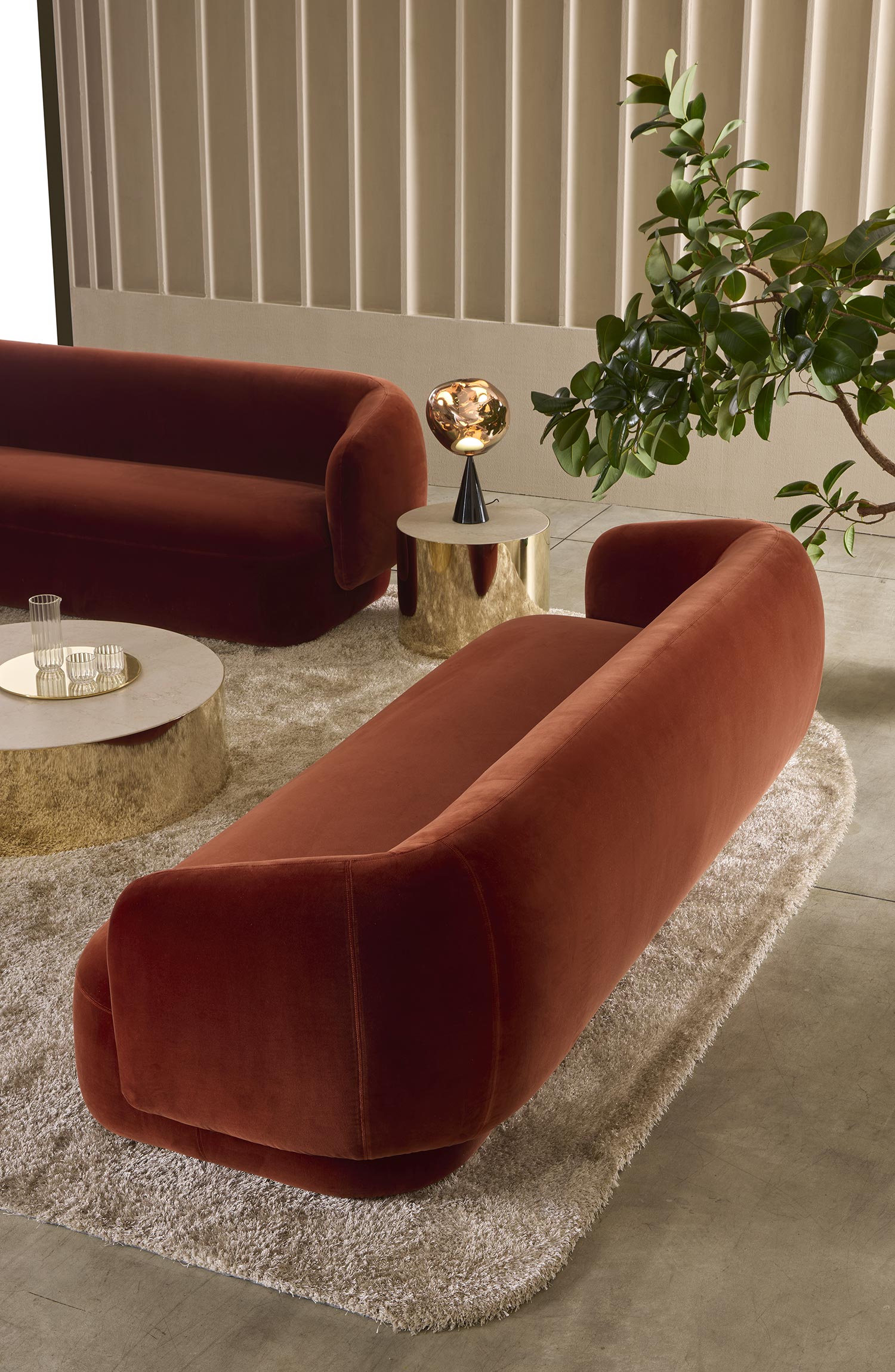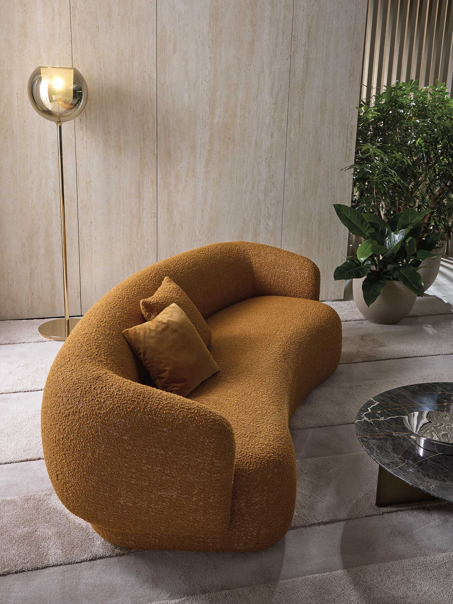 Диваны и кресла Noah характеризуются изогнутым, обволакивающим дизайном с мягкими линиями, вдохновленными очарованием 1970-х годов. Этот стиль придает им уютное и домашнее ощущение, идеально подходящее для создания теплой и комфортной атмосферы. Доступные размеры включают как изогнутые, так и прямые диваны, что позволяет им адаптироваться к различным пространствам и планировкам.