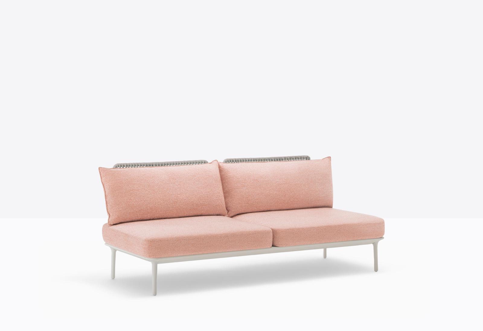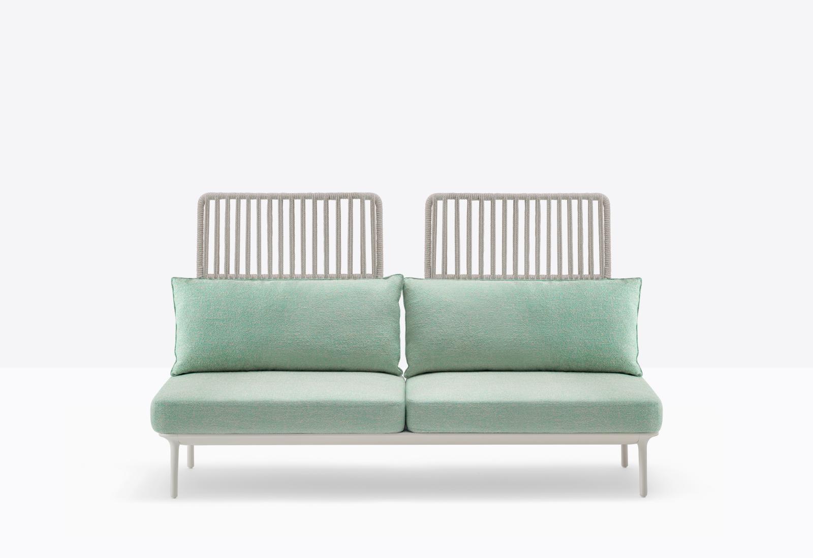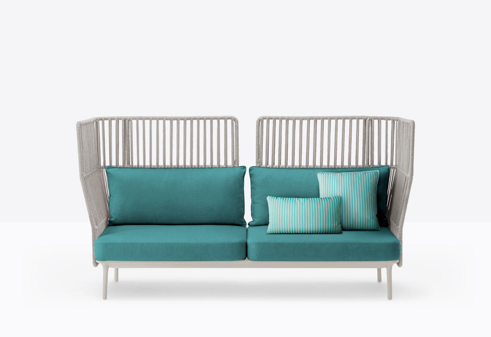 Reva Cocoon — это система лаунж-мест для использования на открытом воздухе, обеспечивающая максимальную свободу использования, высокую адаптивность и возможность конфигурации различными способами для обеспечения максимального комфорта и персонализации. Линия выделяется своими эффектными спинками из нержавеющей стали, переплетёнными верёвкой из устойчивого к погодным условиям полипропилена, что придаёт ей поистине естественный вид. Элемент из верёвки, полностью изготовленный в Италии опытными мастерами, обеспечивает необходимую приватность, оставаясь при этом лёгким и ярким, благодаря более плотному плетению в нижней части и более свободному в верхней секции. Линейный диван с высокой или низкой спинкой, обнимающий периметр рамы из экструзионного алюминия, на концах которой стоят четыре сужающиеся ножки из литьевого алюминия. Чувство окружения усиливается мягкими подушками, которые располагаются на конструкции: сиденья сделаны из полиуретановой пены, а подушки спинки — из полиэстера, обёрнутые полностью водонепроницаемой подкладкой и покрытые уличной тканью.