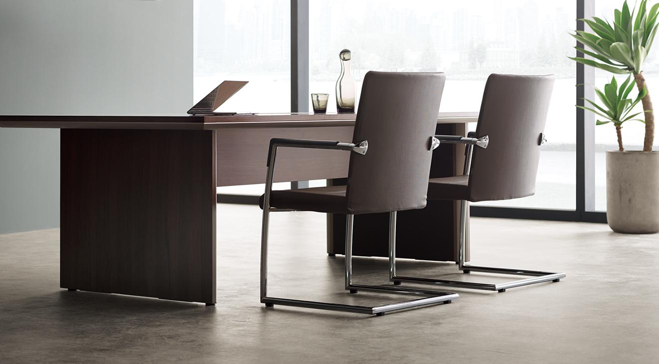 С простым, тонким и квадратным дизайном, сдержанным декором, высококачественной отделкой из искусственной кожи на основе уретана и хромированным покрытием, FX идеально вписывается в высококачественные конференц-пространства.