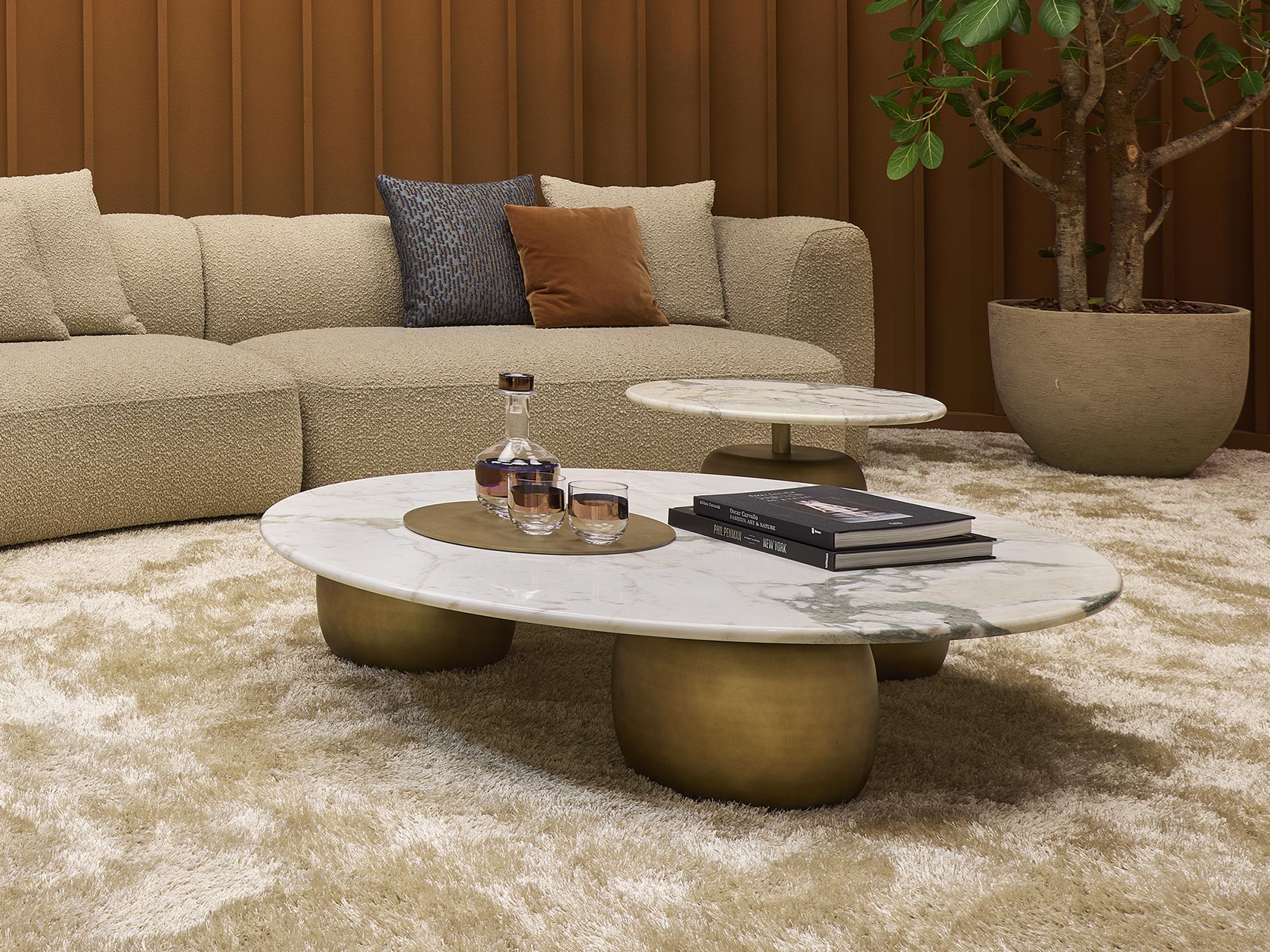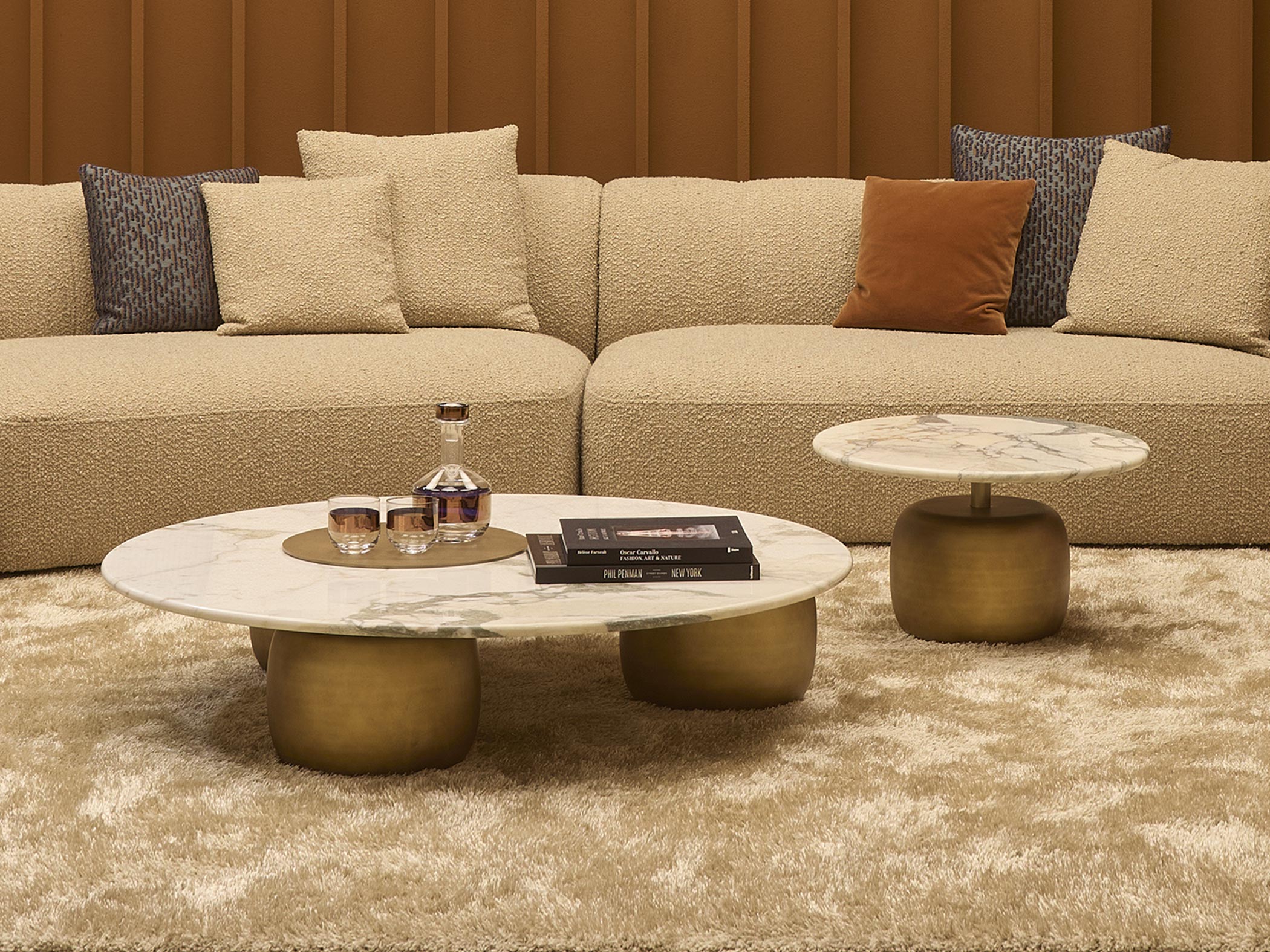 Семейство обеденных и кофейных столов Lua характеризуется своим щедрым и солидным форматом. Столешницы доступны в 16 различных типах мрамора. Каждый отдельный элемент оснований можно настроить по желанию в различных глянцевых или матовых лакированных отделках. Универсальность семейства Lua дополнительно подчеркивается возможностью создания индивидуальных столов. Столы могут быть адаптированы и интерпретированы в соответствии с требованиями дизайна, что позволяет создавать индивидуализированные и высокоэстетические решения. Это делает столы Lua подходящими для различных дизайнерских пространств, включая элитные контрактные зоны, где они могут стать настоящими звездами шоу. Короче говоря, семейство обеденных и кофейных столов Lua с его органической формой, легкостью и разнообразием высококачественных материалов добавляет штрих элегантности и стиля в окружающую обстановку, тем самым завершая декор утонченно.